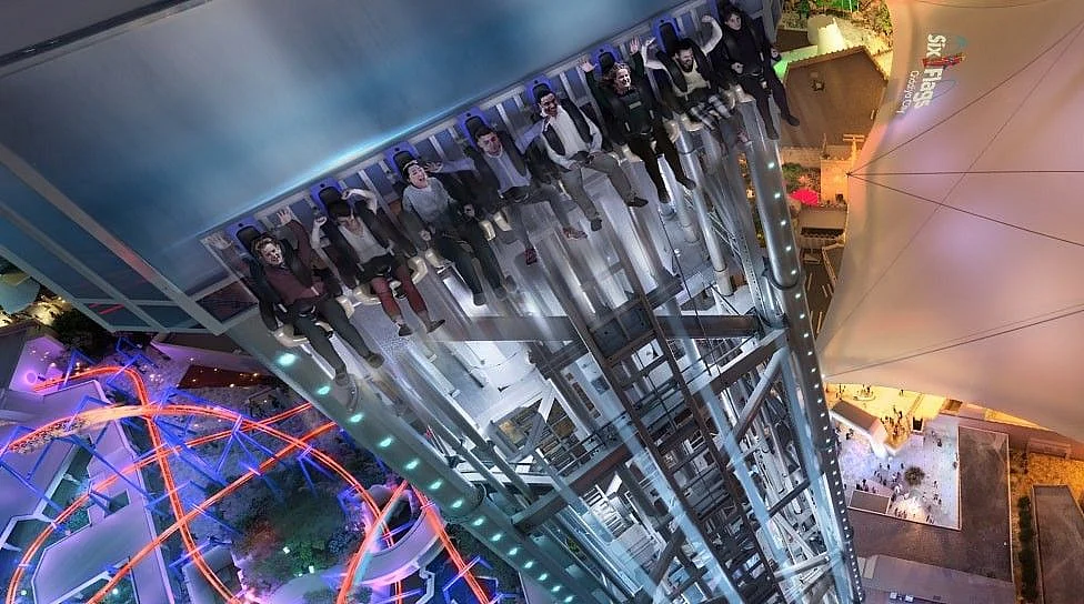 The headline act at Six Flags Qiddiya City is the record-breaking Falcons Flight with 4,325m track length and speed of an F1 car