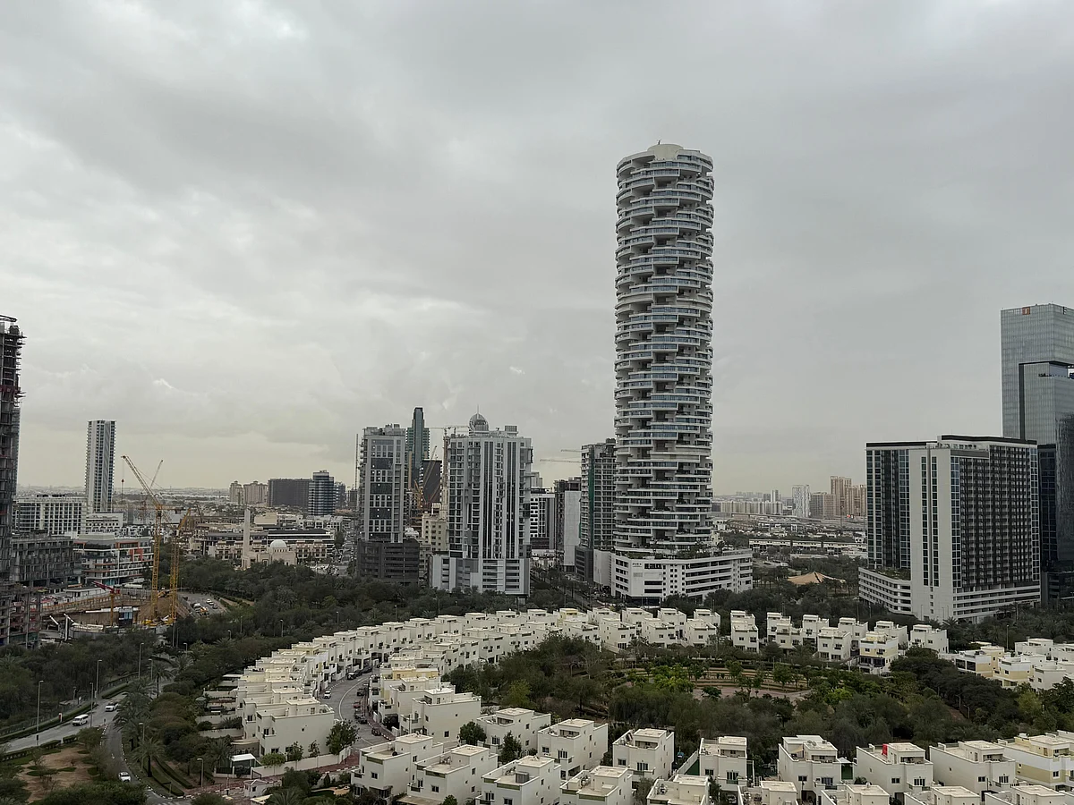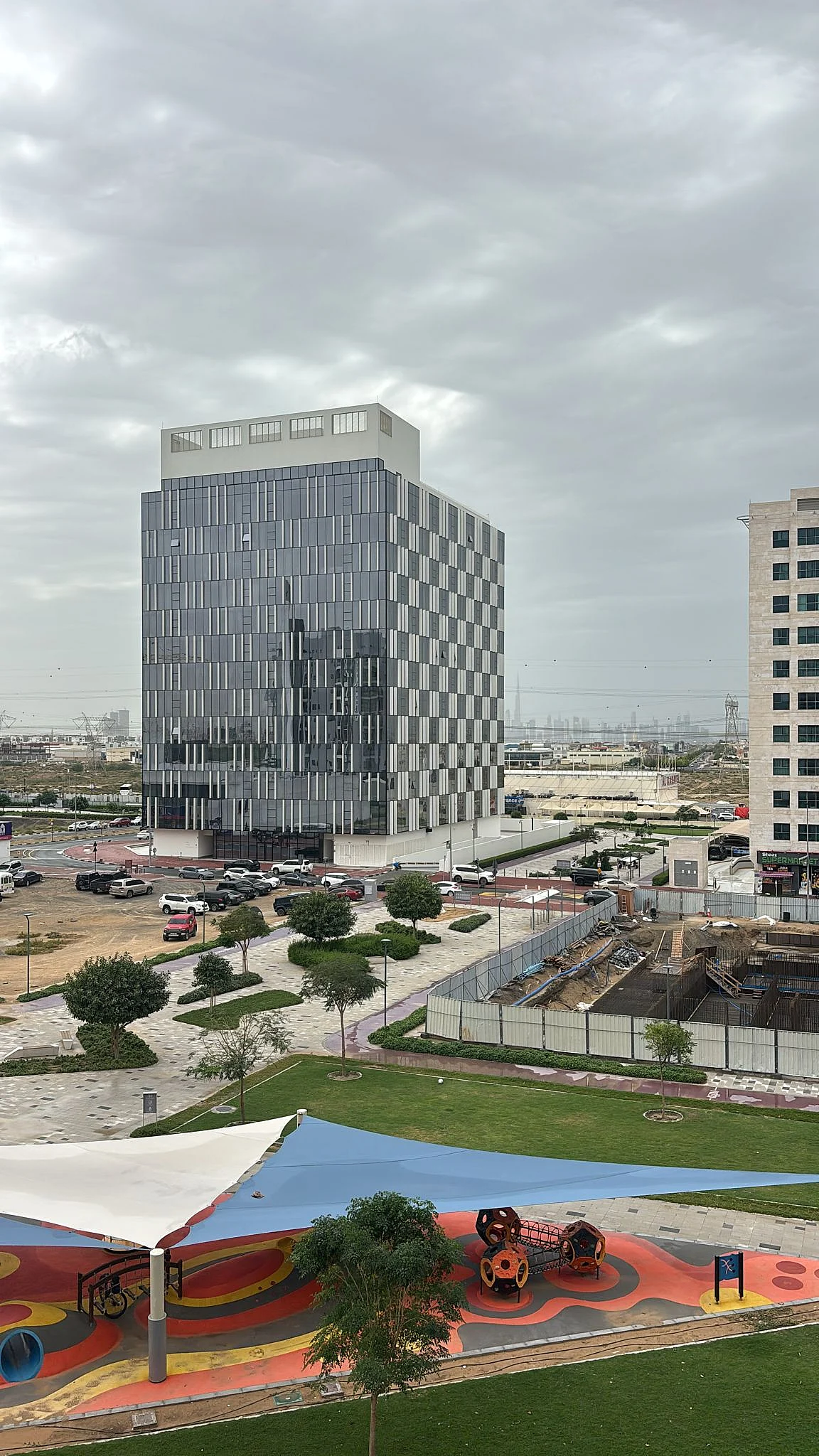 The skies over Dubai Silicon Oasis are opening up once again, with raindrops tapping softly on streets and rooftops. Adding to the atmosphere, distant thunder can be heard rumbling through the grey clouds.