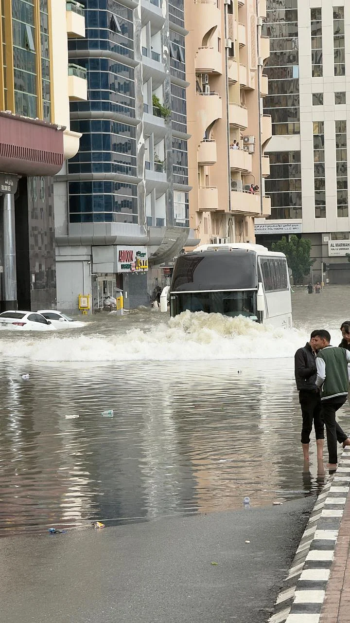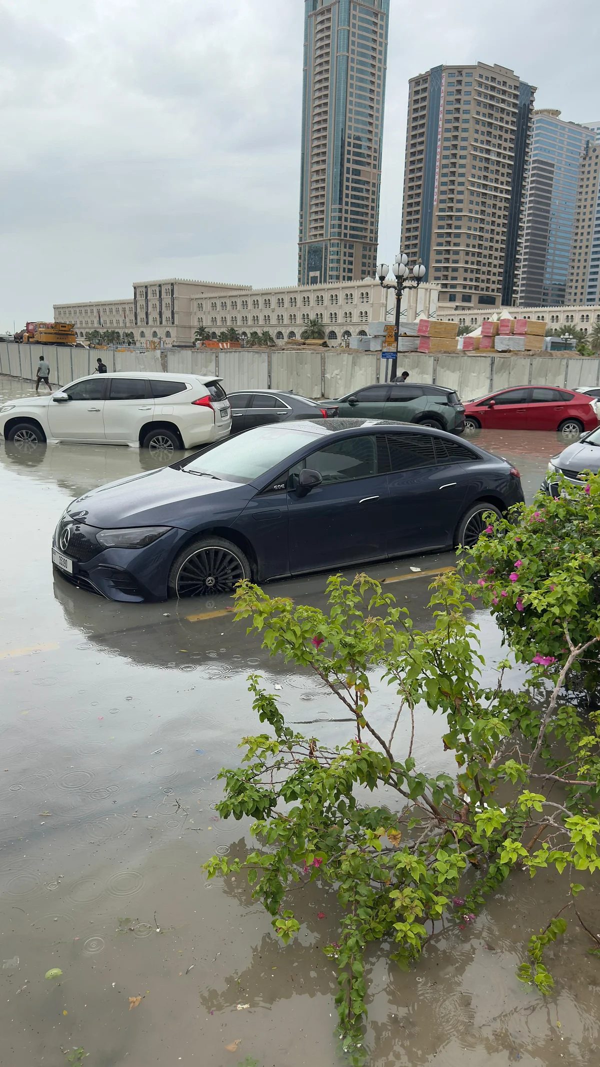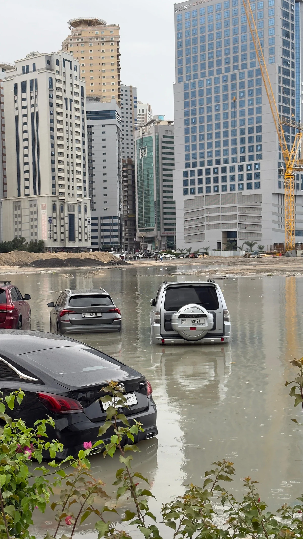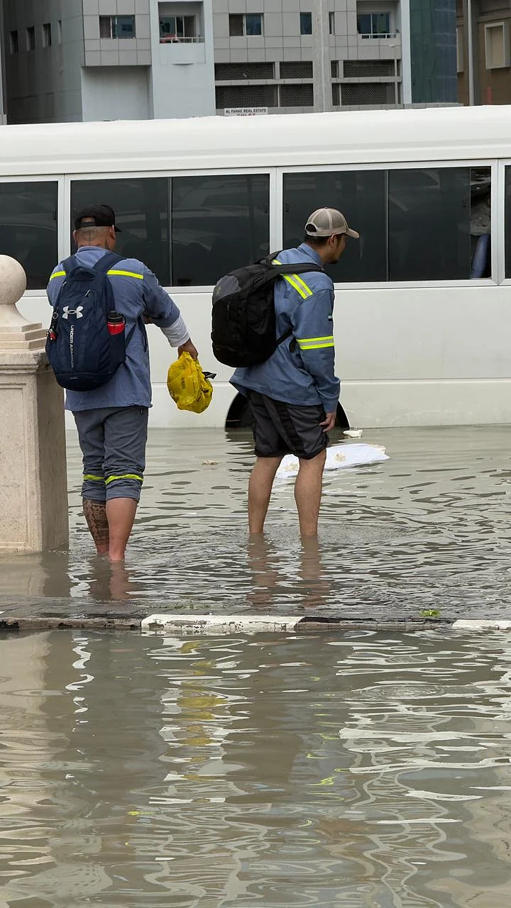 In Sharjah's Al Khan, rainwater has accumulated in low-lying areas causing waterlogging across large areas. Residents could be seen wading through knee-deep waters to get to