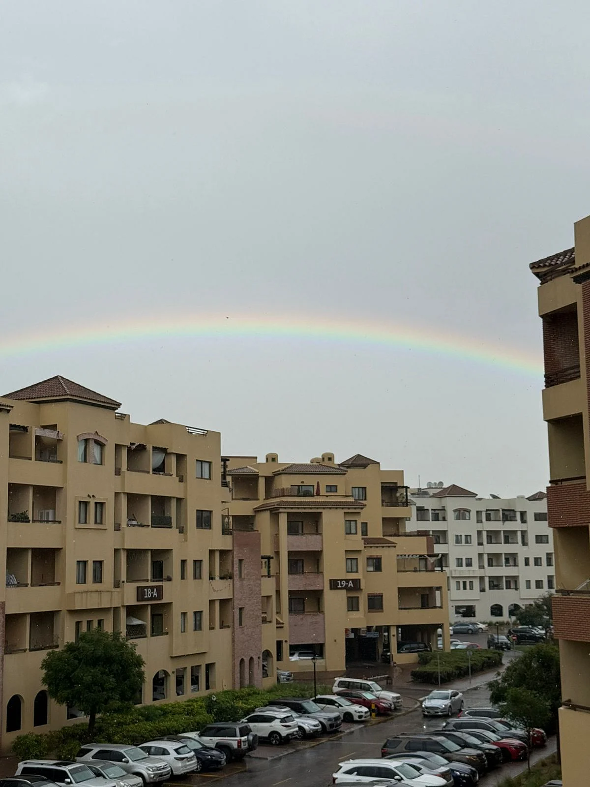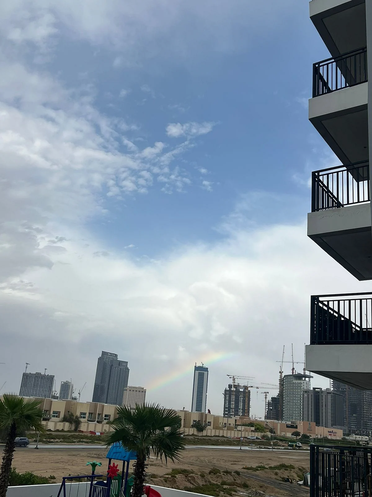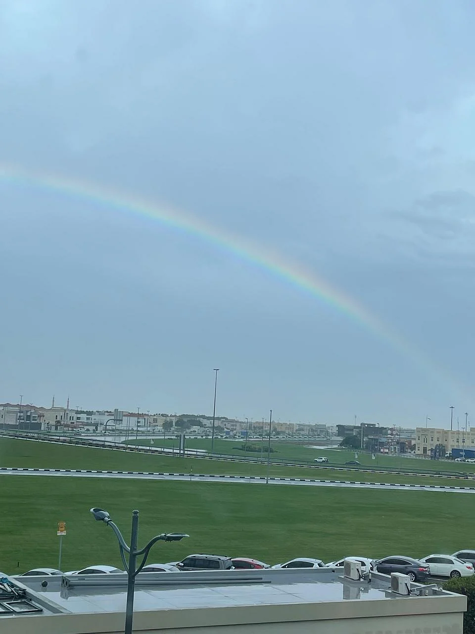 A stunning image of a rainbow shared by the Dubai Media Office lit up the skies, its bright, vivid hues cutting through the gloom. After days of heavy, dark clouds, the sight feels almost refreshing — a gentle shift in mood, and a reminder of how quickly the skies can change.