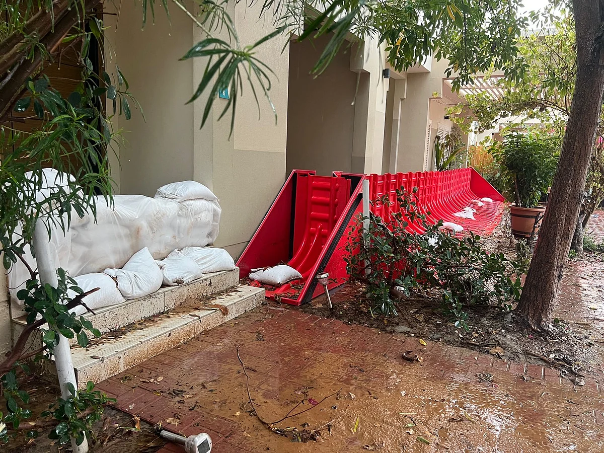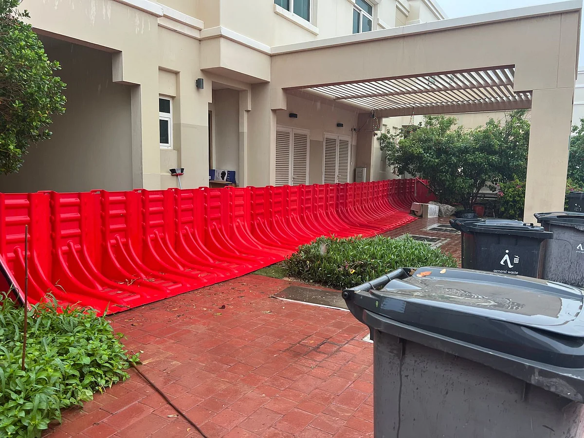 This community close to the Abu Dhabi-Dubai border set up flood barriers around the buildings. Sandbags were also placed around entrances of community spaces.