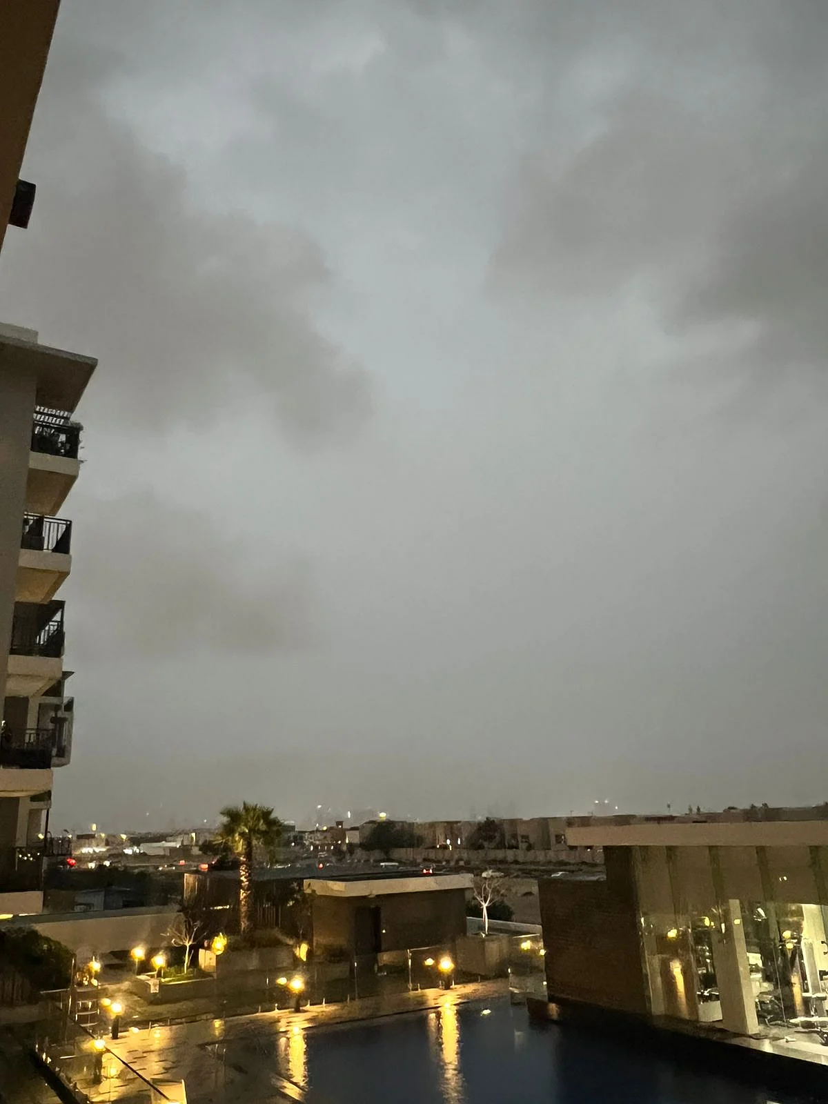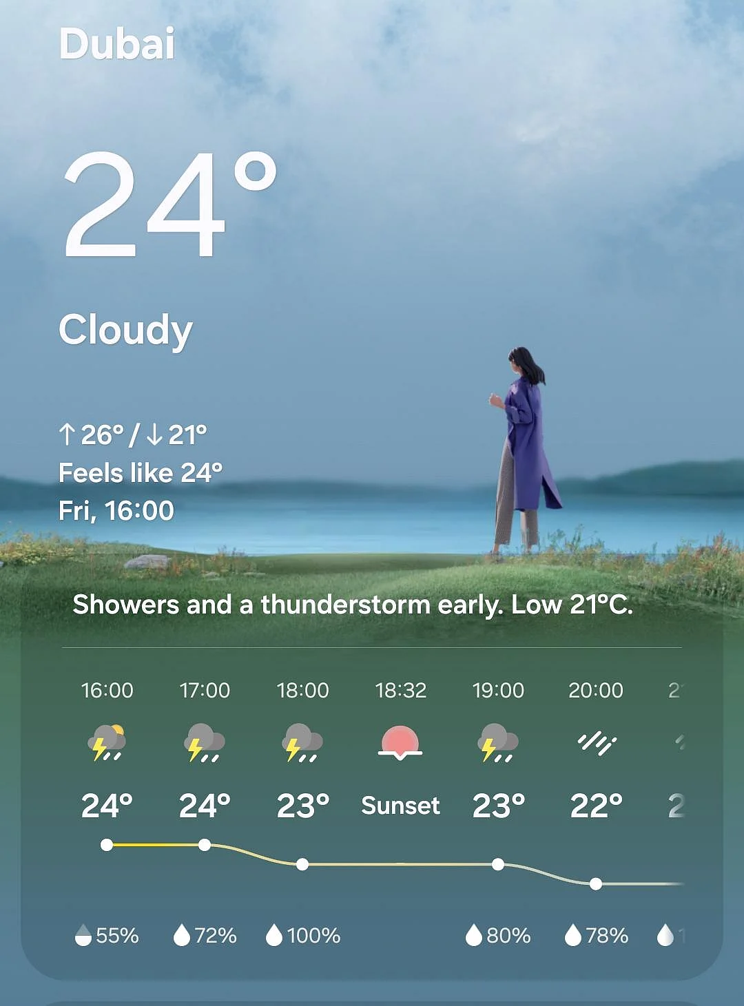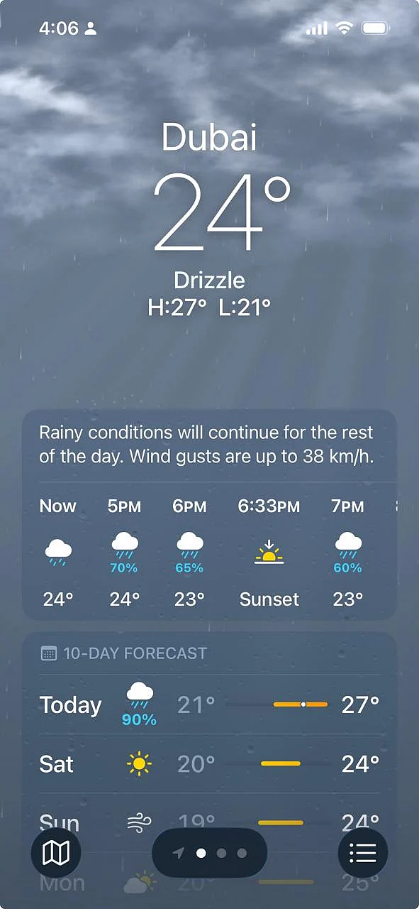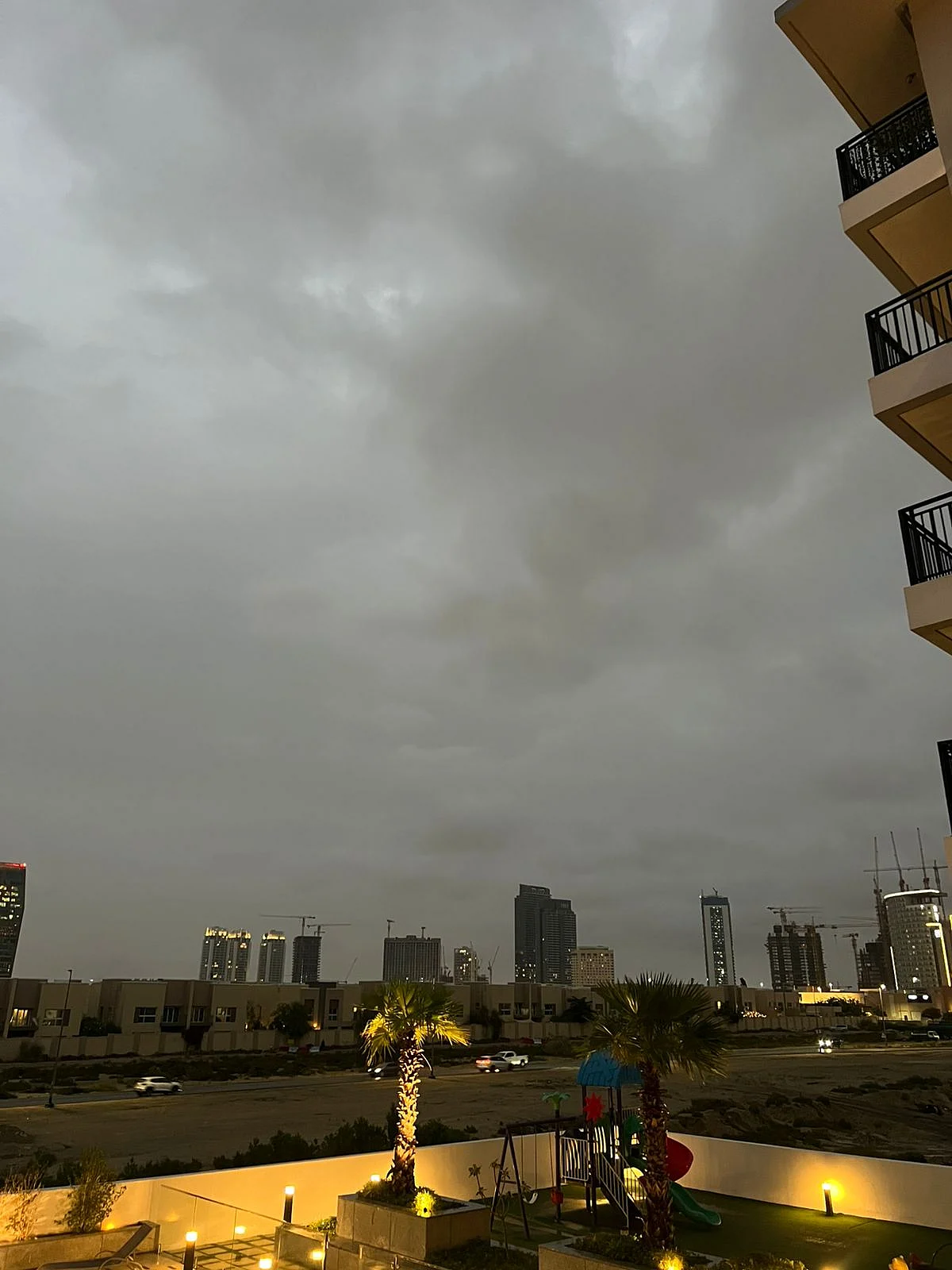 A soft rumble of distant thunder drifts through the drizzle in parts of Dubai.