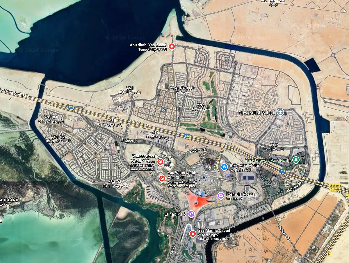 In one of the photos, Bob is seen walking near a small pier, a closer look on Google Maps along Yas Island's northern shoreline features a similar structure. Northern shoreline of Yas Island Yas Island