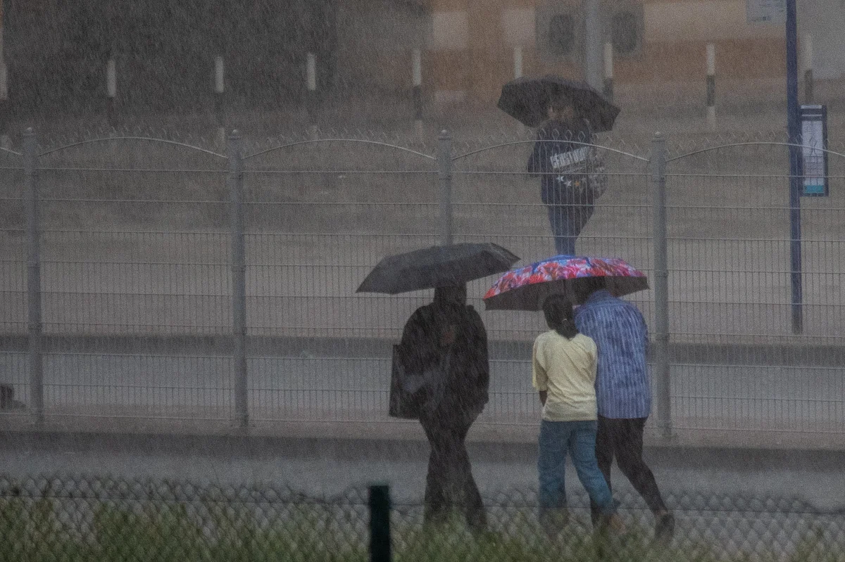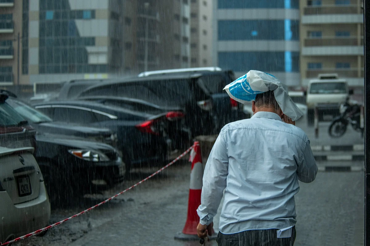 A delivery rider in Sharjah braves the pouring rain, navigating the streets to ensure orders reach customers safelyA man in Sharjah tries to shield himself from the rain by putting a plastic bag over his head while his clothes are soaked throughUnder her umbrella, a woman stands as the rain cascades around her, seeking a moment of shelterCars navigate the streets of Sharjah, making their way through the heavy downpour as rain batters the roadsAs rain floods the streets in Dubai, a group of people crossing the road rush to take cover under their umbrellasDrivers in Sharjah maneuver through the heavy rain, their vehicles leaving ripples in the flooded streetsIn Sharjah, residents take delight in the rain, savouring the cool, refreshing showersCars inch along the slick streets, tyres splashing through puddles as rain pours from the skyA delivery rider in Sharjah weaves carefully through the pouring rain, determined to reach customers despite the rainsA truck ploughs through the rain-soaked streets, water spraying from its tyres as it moves steadily forwardLook: Heavy rains lash parts of UAE as visibility drops, flooding some streetsWatch: Rains sweep across Abu Dhabi, Dubai amid unstable weather conditions
