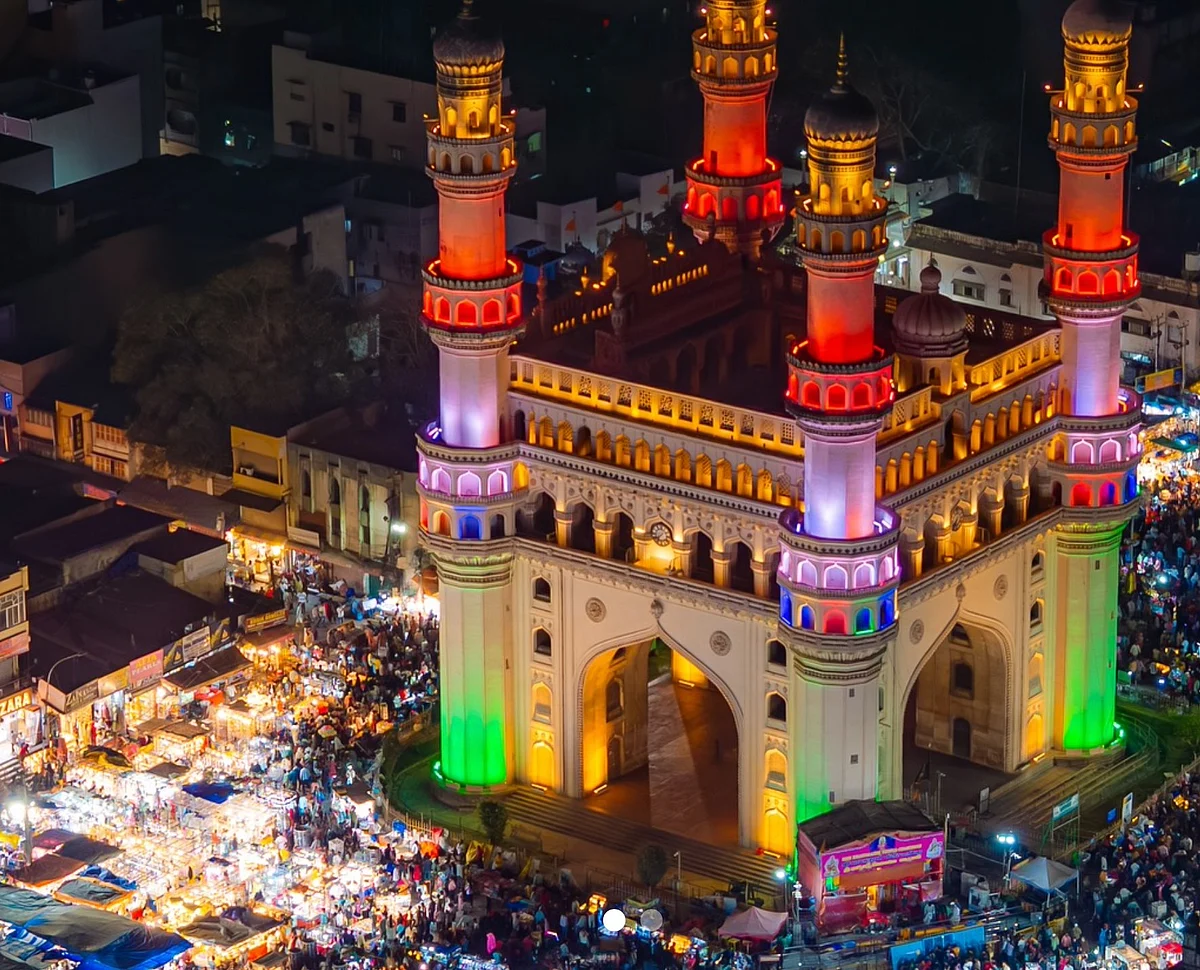 In the vast sprawling area around Charminar, there are large gatherings and the roads are off limits for vehicles. The illuminated Charminar, of course, dominates the night, but other areas are also vibrant. The aroma of food spreads in the neighbourhood and the most popular is ‘Hyderabadi Haleem’.A dish that takes nearly 12 hours to prepare, Haleem is the favourite during Ramadan 2026. There are long queues outside many of the restaurants that offer Haleem. Many visitors also stand by the roadside eateries, enjoying the food at night.Several ingredients go into the making of Haleem; they include almonds, basmati rice, black pepper, cardamom, cinnamon, cloves, cumin, dals, garlic, green chillies, ghee, onions, wheat and of course, mutton.Stay up to date with the latest news. Follow KT on WhatsApp Channels. The entire process of churning out Haleem takes almost 12 hours. Chefs can be seen working on ‘bhattis’ (brick and mud ovens) in several places across Hyderabad during Ramadan, busy preparing the delicious dish in massive vessels, which are kept on traditional ovens.As the sun sets during Ramadan, there’s a dramatic change in the city and the iconic Charminar is an experience all by itself. Photo: The Deccan ArchiveOriginally an Arabic dish, it became popular in India over the past few hundred years. The addition of spices, dry fruits and other locally-sourced ingredients has transformed Haleem, especially in Hyderabad, to a legendary status.During the holy month, Haleem is available everywhere in Hyderabad – from small eateries, to restaurants and even in starred hotels. Cooks start preparing the much-sought-after (while breaking the fast) delicacy from early morning in Hyderabad. And as afternoon approaches, the employees prepare haleem in packets.Ramadan Prayer Time Table 2026 In 2010, the Hyderabadi Haleem emerged as the first meat product in India to get the Geographical Indication status by the India GI registry office. Sanjeev Kapoor, the eminent chef and TV show host, in his book ‘Royal Hyderabadi Cooking’ said the preparation of haleem has become an art form.Moving around HyderabadAs the sun sets during Ramadan, there’s a dramatic change in the city. Temperatures dip and walking around the iconic Charminar monument is an experience all by itself. It’s the most favourite spot even during the rest of the year, but during Ramadan it comes alive.Other neighbourhoods in Hyderabad also turn colourful, as shops sell interesting stuff till well past midnight. Laad (or Choodi) bazaar is a historic market near Charminar. It was established in the 1590s and is renowned for its lacquer bangles, pearls, bridal wear and attar (perfumes). People also throng the several historic mosques in Hyderabad, many of which are within walking distance from the bazaars and crowded areas.Mohammed Sibghatullah KhanMohammed Sibghatullah Khan is just 25, and over the past five years, he has been actively moving around the various spots in Hyderabad, the capital of the southern Indian state of Telangana, during Ramadan at night.‘We do a lot of walking tours during Ramadan, and taking our guests around interesting places for nearly three hours till early morning,” he told Khaleej Times.An architect, researcher and writer, Khan explores the history, architecture, and urban heritage in Hyderabad and the Deccan region. He shared: “My research engages with the ways cities evolve over time, the pressures of modern development, and the preservation— and often erasure —of historic urban landscapes.”Khan is founder of The Deccan Archive, a public history initiative that documents, interprets, and shares the cultural and architectural legacy of the Deccan.Among the guests who join him on these walks around Hyderabad at night are Indians from across the country, Gulf-based and other NRIs, besides many foreigners. Khan has also been invited to present and collaborate with academic and cultural institutions in India and abroad, with interests spanning Islamic art and architecture, urban history, and public engagement with heritage.Other areas that attract a lot of people include Old City, Tolichowki, Mallepally, Nampally and other neighbourhoods. Tolichowki has its old-world charm and the shops have on offer a range of products from traditional ethnic wear to modern dresses. Shoppers look for bangles, burqas, cosmetics, clothes and footwear at Mallepally.Ramadan 2026: How food walks unite cultures across Indian citiesRamadan 2026: Experience Mughlai-inspired community Iftar in Old DelhiRamadan 2026: Karama's street food festival back with 100 restaurants, Dh5 dishes
