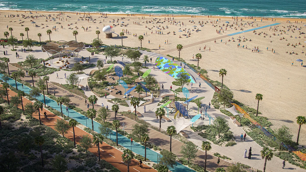 The beach development is expected to cater to 6 million visitors annually, offering facilities that cater to the elderly and people of determination, as well as amenities for nighttime swimming and a variety of healthy and recreational activities.