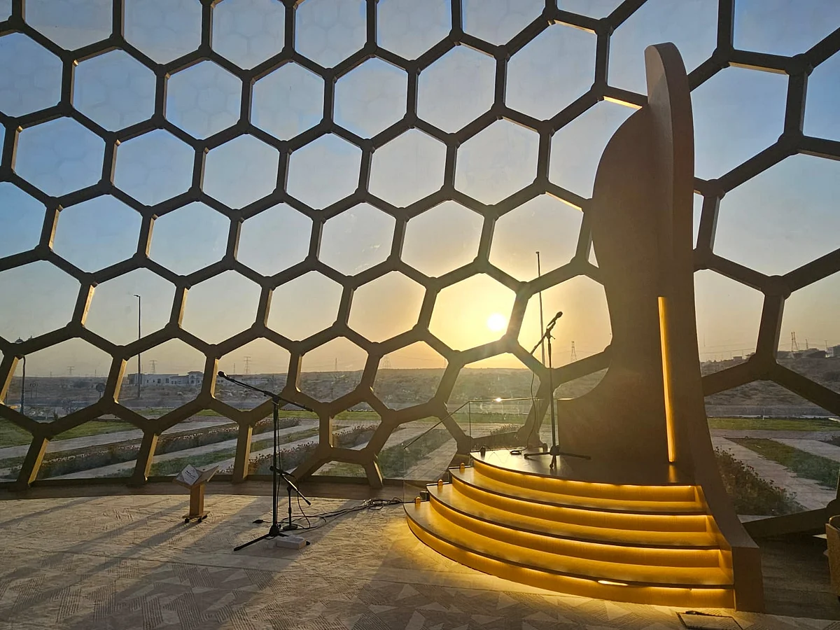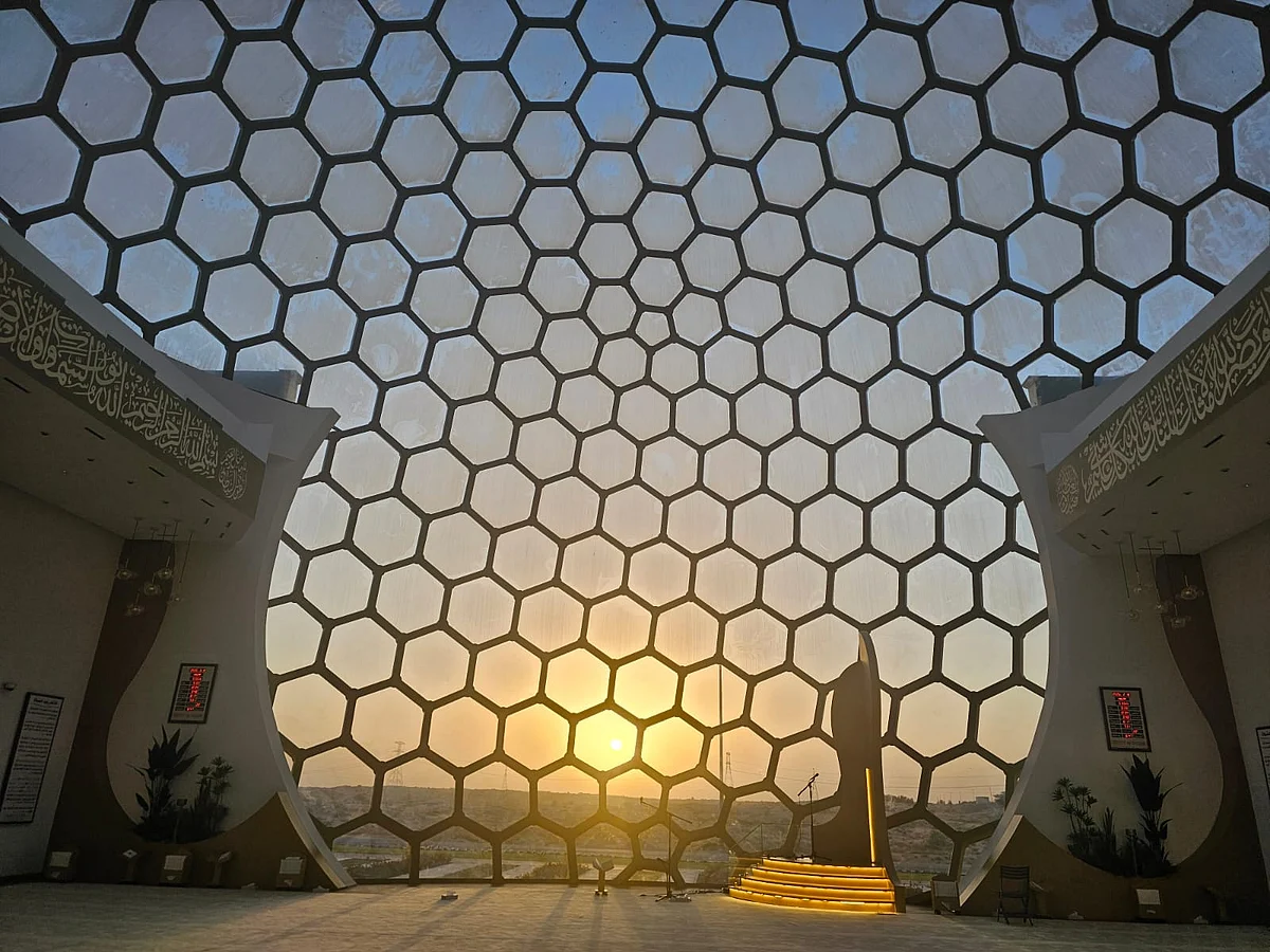 As the sun sets over Al Dhaid, the inside of newly opened Al Nasr Mosque begins to glow. Golden light pours through a giant round glass dome made of small hexagon-shaped glass panels, and the prayer hall fills with warmth and calm sunlight. For a few minutes, it feels as if the mosque is made of light.Inaugurated on Tuesday by Sheikh Sultan bin Ahmed bin Sultan Al Qasimi, Deputy Ruler of Sharjah, Al Nasr Mosque stands in the Jabal Omar neighbourhood as one of the emirate’s most striking new landmarks.An interior view of Al Nasr Mosque’s giant glass dome. The hexagonal panels reflect golden sunset light across the prayer spaceRamadan Prayer TimingsThe mosque covers more than 7,800 square metres. But what immediately captures attention is the dome.Stay up to date with the latest news. Follow KT on WhatsApp Channels.The spherical glass dome measures 20 metres in diameter and rises 16 metres high. It covers nearly 80 per cent of the mosque’s roof, making it the dominant feature of the structure. Built using a honeycomb-style pattern of hexagonal glass panels, the dome reflects light throughout the day, but at sunset, the effect is breathtaking.Sunset light fills the prayer hall of Al Nasr Mosque with a golden glowBeside the dome stands a 38 metre-tall minaret with flowing, sculpted lines. It does not follow the traditional straight design. Instead, it rises in a soft twist, complementing the round dome and giving the mosque a modern look.Inside the main prayer hall, there are 12 rows prepared for worshippers. The space feels wide, open and peaceful. The large circular glass façade facing the qibla allows natural light to enter freely.The futuristic mimbar features smooth lines and soft lighting, reflecting the mosque’s modern designThe mimbar, where the imam delivers the sermon, also stands out. Unlike traditional wooden pulpits with heavy carvings, this one has a clean and futuristic design. It rises in smooth lines, with soft lighting built into its structure, and blends naturally with the modern look of the dome and prayer hall. It feels simple, matching the mosque’s overall architecture.On Wednesday evening, some worshippers gathered for Maghrib prayer, many visiting the mosque for the first time.“I have prayed in many mosques, but this one feels different” said Ahmed Al Mazrouei, a resident of Al Dhaid.“When the sunlight comes through the dome, you feel a kind of peace. It makes you want to stay longer.”Another worshipper, Saeed Al Ketbi, said the design left a strong impression on him. “From outside it looks modern, but inside it feels very spiritual. The light, the space, everything is calm. It is beautiful and simple at the same time.”The mosque can accommodate 1,325 worshippers in total. The main hall holds 470 people, while the courtyard and outdoor prayer areas increase the male capacity to 1,180. A separate women’s prayer hall can host 145 worshippers.Outside, a fountain area welcomes visitors at the entrance. Water flows gently. Around the mosque, a small landscaped garden has been created with grass and concrete benches that makes evening very special by just seeing the sun set. The mosque also includes ablution areas, restrooms, mortuary washing facilities, a water station, an imam’s residence, a public reading library and parking spaces, serving residents of Al Dhaid and nearby communities.The beautiful architecture and flowing light position the mosque as an ideal gathering point at sunset, where residents can have a memorable iftar surrounded by beautiful views.Sheikh Zayed Grand Mosque Centre in Abu Dhabi prepares for RamadanLook: Design revealed for Dubai's Palm Jebel Ali Friday MosqueDubai: Mosques, Eid prayer grounds to get upgrades under new agreement