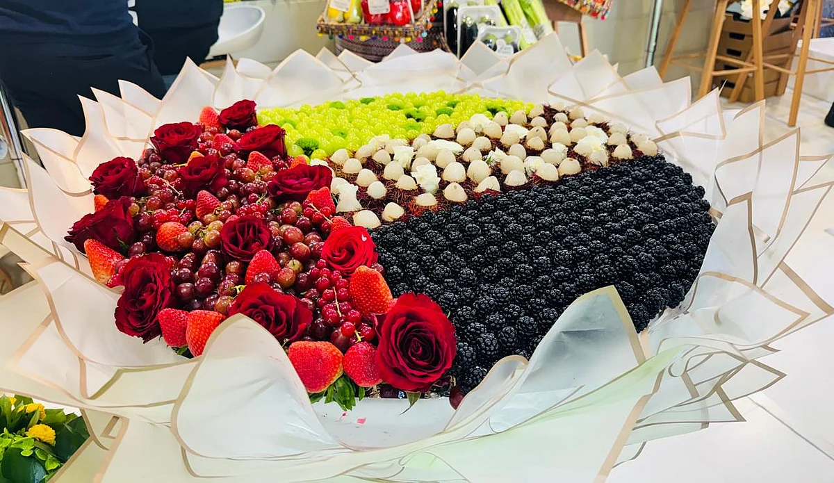 Flower bouquets just not your thing? Check out the fruit bouquet at the North Hall 12 and 13 at Dubai Exhibition Center in Expo City. Made with blackberries, lychee, straberries and green and red grapes, the fruits have been arranged to form the UAE flag.